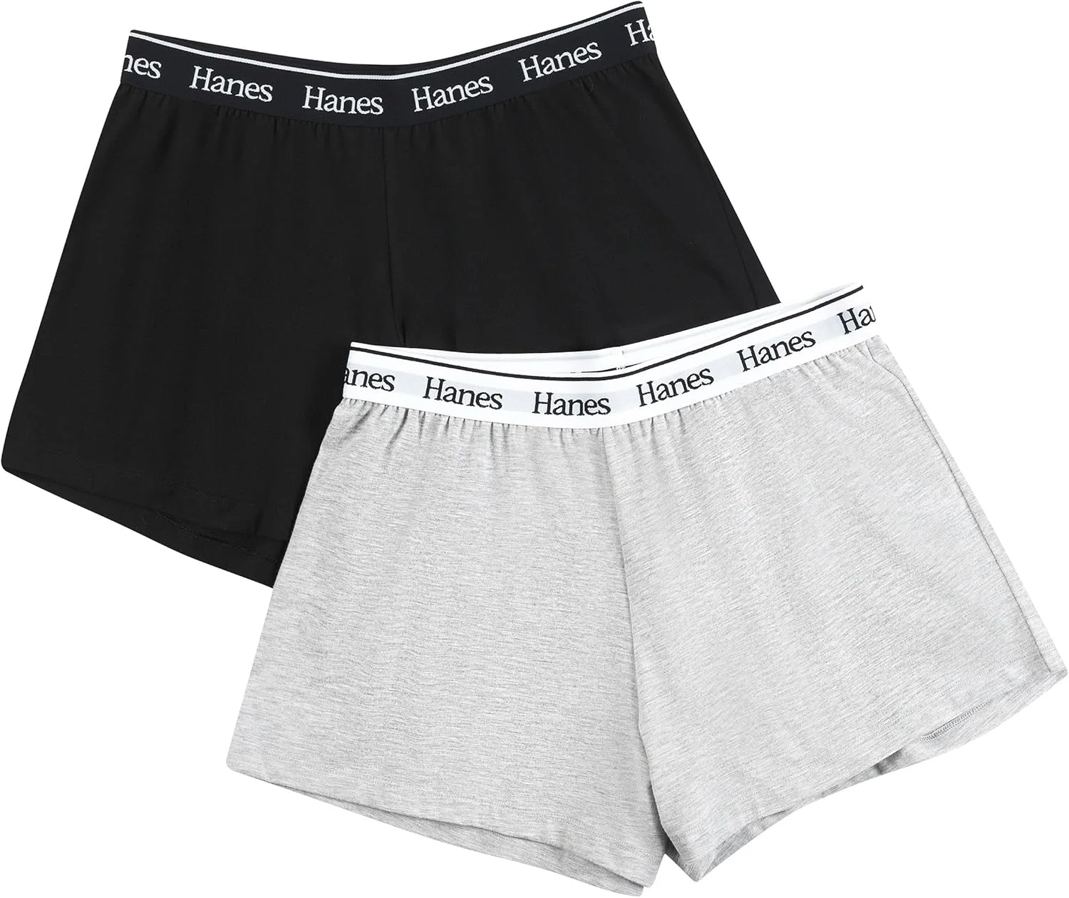 These women’s sleep shorts are the perfect loungewear option, thanks to their laid-back style and comfortable fit. The must-have design is made with soft cotton blend jersey fabric – allowing you to move freely and comfortably. Hanes® branding highlights the elastic waistband in a nod to our iconic heritage. The best part? These women’s sleep shorts are brushed on the inside – so they feel as great as they look. Available in an assorted color 2-pack – pair them with our matching soft-stretch jersey bralette, rib tank, and more for an easy go-to look. Whether you’re lounging or sleeping, these sleep shorts for women bring the comfort. Hanes Comfywear: Loungewear never looked and felt so good.